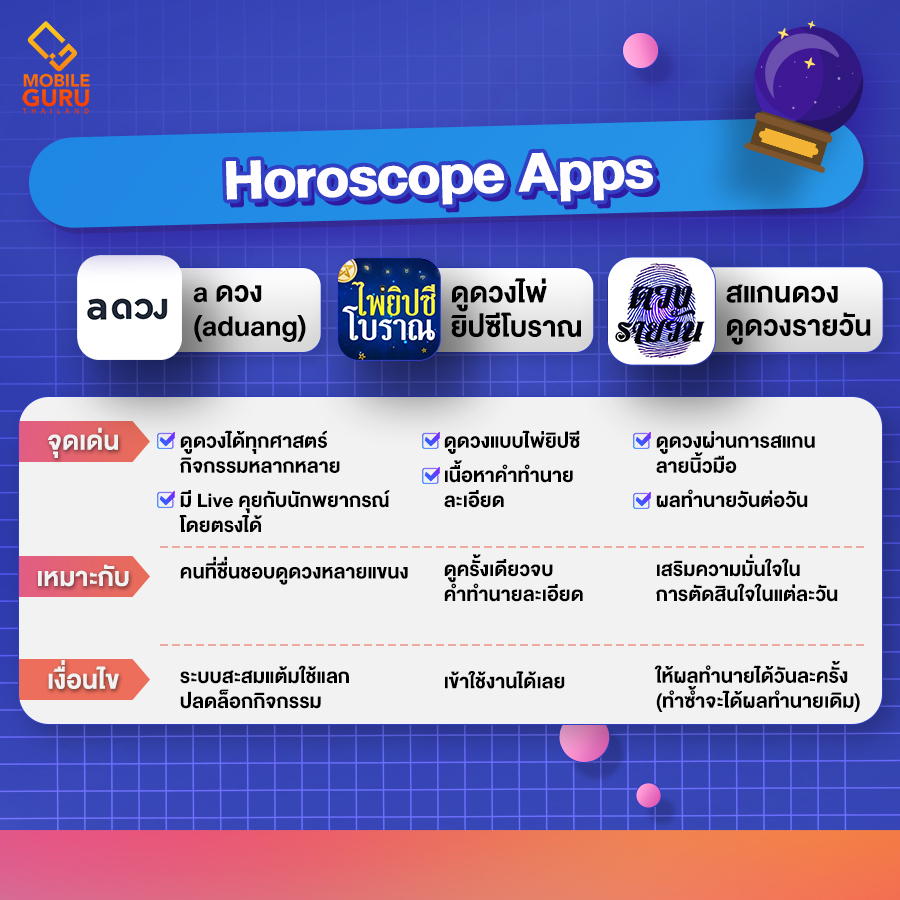 วันนี้ MOBILE GURU เราอยากช่วยให้ทุกคนใช้ชีวิตกันง่ายขึ้น ด้วยการรวบรวมแอปพลิเคชันตัวช่วยสำหรับการวางแผน ไม่ว่าจะการงาน การเงิน หรือสุขภาพ ตั้งเป้าหมายอะไรไว้ เรามาทำให้สำเร็จไปด้วยกัน!
