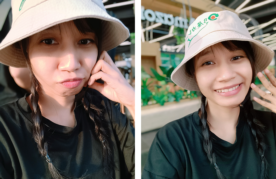 ผลงานภาพถ่ายที่ออกมาเป็นที่น่าพอใจค่ะ สวยงาม คมชัด และเก็บรายละเอียดต่าง ๆ ได้ดี โทนสีสวย ภาพถ่ายโหมด Portrait ถ้าโฟกัสไม่ตรงจุดสามารถปรับแก้หลังกล้องได้ ปรับเพิ่ม-ลดความเบลอทีหลังก็ได้ด้วยเหมือนกัน AI ค่อนข้างฉลาด (มาก) ส่วนใหญ่จะปรับภาพ ณ ขณะที่เรากำลังถ่ายอยู่นั้น ๆ ให้เลยอัตโนมัติ สำหรับคนที่ไม่ถนัดการใช้งานกล้องจุดนี้น่าจะเป็นข้อดีที่ค่อนข้างตอบโจทย์การใช้งานจริงค่ะ