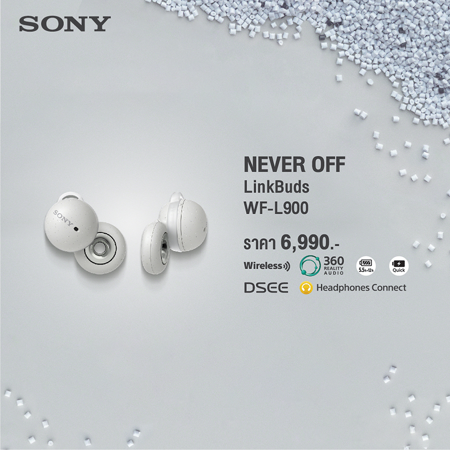 สำหรับ Sony เป็นแบรนด์ที่มีสินค้าค่อนข้างหลากหลาย (และก็มีในส่วนของโทรศัพท์มือถือด้วยเช่นกัน) แม้ว่าในตลาดประเทศไทยจะไม่ได้มุ่งทำตลาดทางฝั่งมือถือเป็นหลัก แต่ก็ถือว่ายังมีกระแสตอบรับแรงดีใช้ได้ โดยในพาร์ทของหูฟัง ก็มีการเปิดตัว LinkBuds รุ่น WF-L900 หูฟังไร้สายดีไซน์สุดล้ำรุ่ โดดเด่นด้วยการออกแบบเป็นรูปวงแหวนเปิด (Open Ring) มีเอกลักษณ์ไม่เหมือนใคร ให้ความโปร่งใสของเสียง ไม่พลาดทุกการติดต่อสื่อสาร