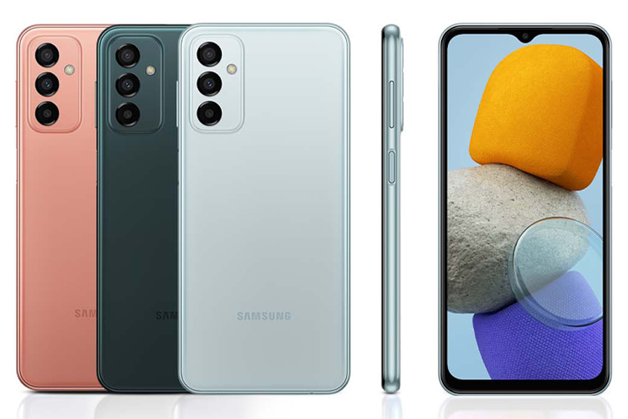 Samsung Galaxy M23 5G มีให้เลือกทั้งหมด 3 สี ได้แก่ สีเขียวเข้ม Deep Green, สีฟ้า Light Blue และสีส้มทองแดง Orange Copper ในรุ่นความจำ RAM 6GB + ROM 128GB เปิดตัววางจำหน่ายในราคา 8,999 บาท