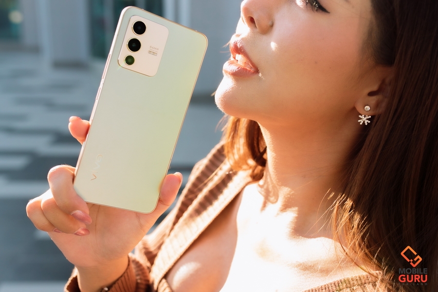 vivo V23 5G เป็นสมาร์ทโฟนรุ่นใหม่ล่าสุดรับปีใหม่ของทาง วีโว่ มาพร้อมสโลแกน คมชัดทุกโมเมนต์ที่เป็นคุณ สมาร์ทโฟนรุ่นนี้มีดีไซน์ที่สวยงามมาก เป็นสมาร์ทโฟนที่ดูเนี๊ยบในทุกรายละเอียด พร้อมรูปทรงเหลี่ยมและมีมุมที่โค้งมนสวยงาม วัสดุพรีเมี่ยมกระจก และโลหะ สำหรับกระจกด้านหลังรองรับ Color Charging Glass (เฉพาะเครื่องสี Sunshine Gold) เทคโนโลยีฝาหลังกระจกเปลี่ยนสีได้ด้วยแสง UV, หน้าจอ AMOLED, Refresh Rate 90Hz, กล้องหน้าจัดเต็ม กล้องหน้าคู่ ความละเอียดสูง 50MP + 8MP (ultrawide) และมาพร้อม Dual Selfie Spotlight และรองรับระบบกันสั่น ส่วนกล้องหลัง 3 เลนส์ ความละเอียด 64MP + 8MP (ultrawide) + 2MP (macro) พร้อม Dual-LED flash และระบบกันสั่น รุ่นนี้ยังรองรับการบันทึกวิดีโอระดับ 4K 30FPS และ 1080P 60FPS ทั้งกล้องหน้า-หลังเลยครับ นอกจากนี้ยังมาพร้อมฟีเจอร์ถ่ายภาพที่อัดแน่นมาอย่างเต็มอิ่ม