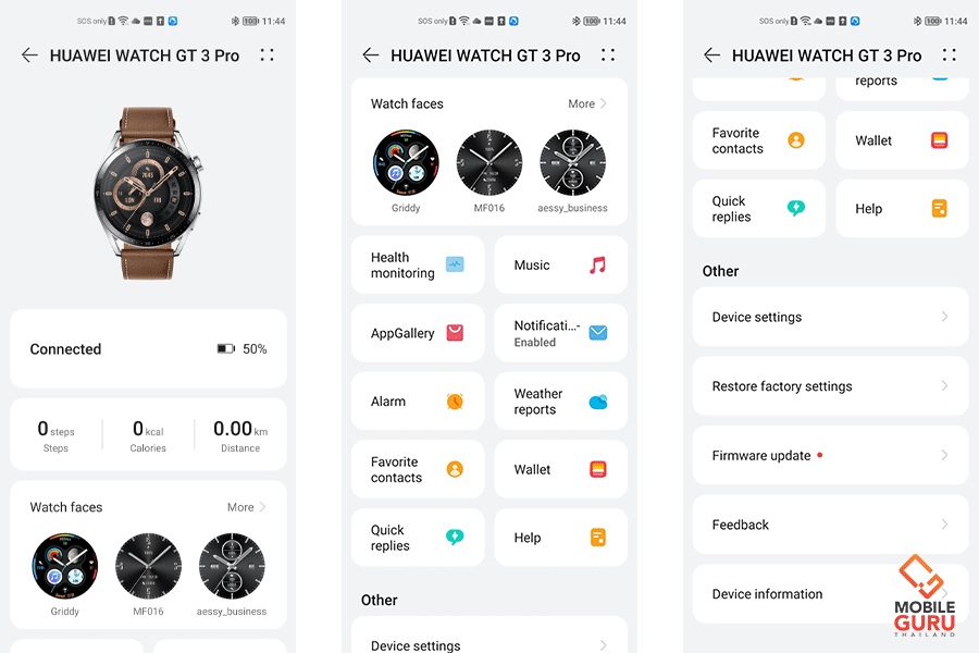 หน้าอินเทอร์เฟซการใช้งานบน Huawei Watch GT 3 Pro
