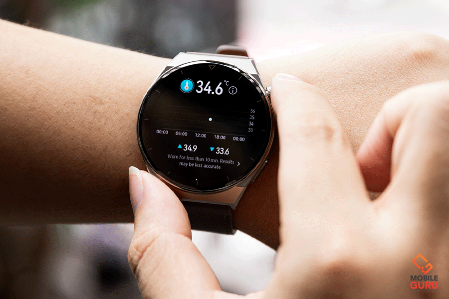 รวมไปถึงของเล่นใหม่ "Skin Temperature" หรืออุณหภูมิผิวหนัง เพื่อวิเคราะห์การเสียน้ำหรือใช้บอกอุณหภูมิโดยเฉลี่ยของร่างกายในขณะนั้นได้ ซึ่งทั้งหมดที่ว่า Huawei Watch GT 3 Pro รองรับทั้งหมดเลยนะครับ จะมีเพียง ECG ที่ตอนนี้ทางหัวเว่ยบอกว่า ในเวอร์ชั่นวางจำหน่ายจริง น่าจะยังต้องรอการตรวจสอบจากหน่วยงานราชการไทยอยู่ แต่ถ้าถูก Approve เมื่อไรก็จะรีบปล่อยอัปเดทให้ใช้งานได้ทันทีแน่นอน