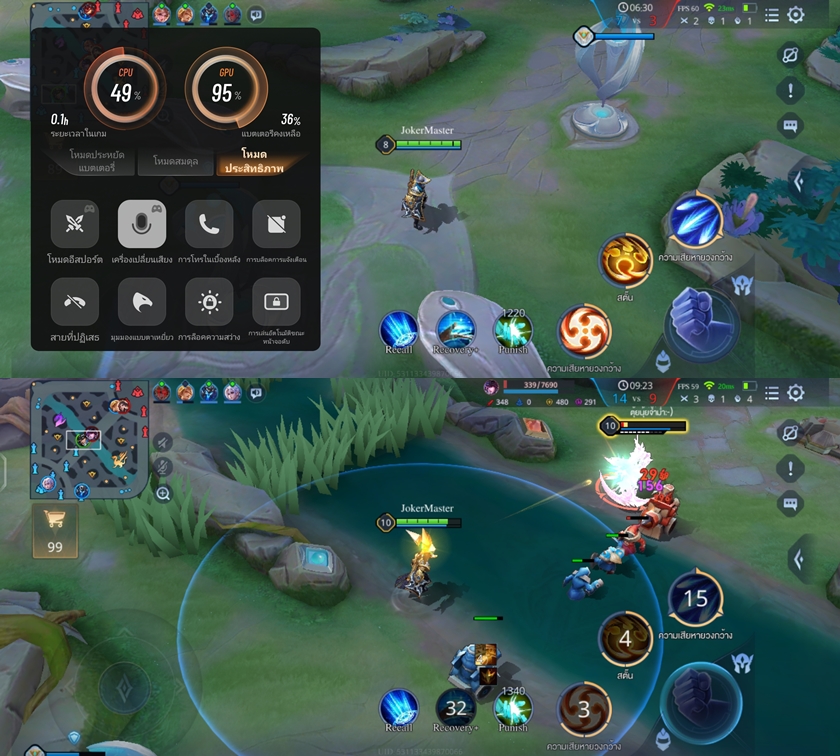 ทดสอบด้วยเกม ROV ค่าเฟรมเรท 59FPS - 60FPS ตลอดเกมเลยครับ และการทัชหน้าจอลื่นติดนิ้วดีมากๆ