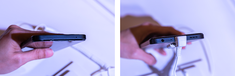 ด้านบนของตัวเครื่องมีรูไมโครโฟนตัดเสียงรบกวน ส่วนด้านล่างมีช่องเสียบหูฟังขนาด 3.5 มิลลิเมตร, ไมโครโฟนสนทนา, พอร์ตเชื่อมต่อสำหรับชาร์จแบตเตอรี่และถ่ายโอนพลังงาน/ข้อมูลแบบ USB Type-C และลำโพงเสียง