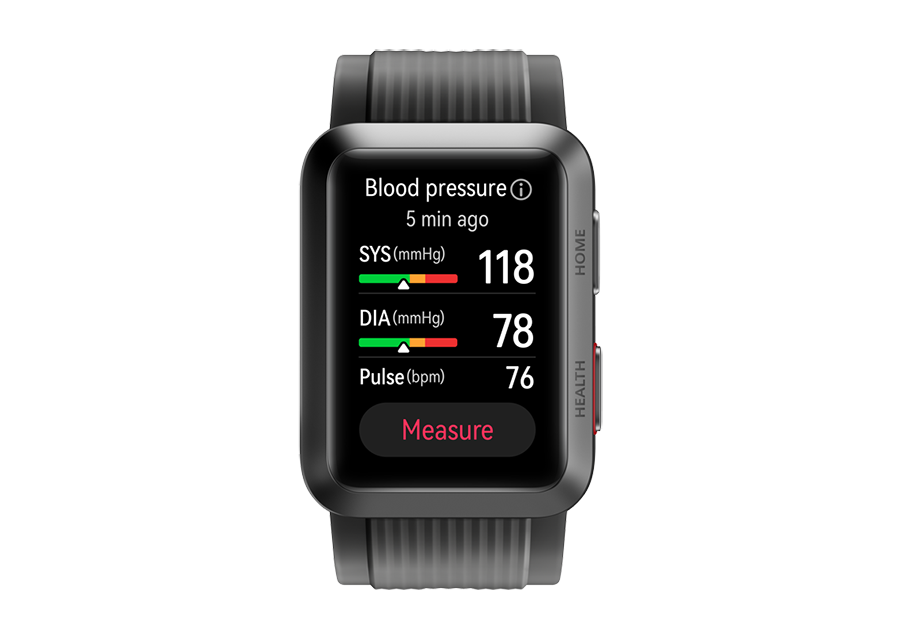 HUAWEI WATCH D สมาร์ทวอทช์ที่เป็นเสมือนเครื่องวัดความดันโลหิตแบบข้อมือในรูปแบบดิจิทัล มาพร้อมความสามารถในการวัดความดันโลหิตและอัตราชีพจรในผู้ใหญ่ มีคุณสมบัติการเตือนคลื่นไฟฟ้าหัวใจและจังหวะชีพจรเป็นระยะ ซึ่งได้รับการอนุมัติจากสํานักงานคณะกรรมการอาหารและยาให้จัดเป็นอุปกรณ์ทางการแพทย์ประเภทที่ 2