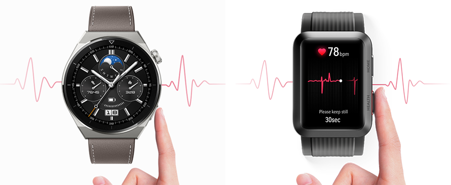 การตรวจวัดคลื่นไฟฟ้าหัวใจด้วยแอปพลิเคชัน ECG ซึ่งเป็นแอปพลิเคชันสำหรับนาฬิกา HUAWEI และโทรศัพท์มือถือ สามารถบันทึกผล ECG ได้โดยการวัดแบบ Single Lead โดยแอปพลิเคชันจะรับสัญญาณรูปคลื่นภายใน 30 วินาที และวิเคราะห์ผลลัพธ์แบบเรียลไทม์ กำหนดจังหวะไซนัส และความเสี่ยงของภาวะหัวใจเต้นผิดจังหวะ โดยพิจารณาจากรูปคลื่นของคลื่นไฟฟ้าหัวใจในแอป ECG และมีคุณสมบัติแจ้งเตือนความผิดปกติของภาวะหัวใจเบื้องต้น ที่สามารถติดตามและตรวจสอบทุกที่ทุกเวลาผ่านสมาร์ทวอทช์เพียงเครื่องเดียว