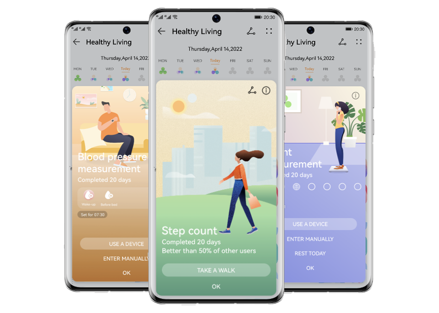 HUAWEI WATCH D และ HUAWEI WATCH GT 3 Pro มีฟีเจอร์ HUAWEI Healthy Living Shamrock ที่จะคอยช่วยดูแลสุขภาพของผู้ใช้งานให้สมบูรณ์แข็งแรงอยู่เสมอ โดยจะช่วยแจ้งเตือนกิจวัตรต่างๆ ในชีวิตประจำวัน เช่น การดื่มน้ำ การรับประทานยาตามเวลา การนับก้าว หรือแม้กระทั่งการเตือนเมื่อนั่งติดต่อกันเป็นระยะเวลานาน และยังสามารถเก็บบันทึกการออกกำลังกายอย่างละเอียดกับโหมดออกกำลังกายมากกว่า 70 โหมด อาทิ วิ่ง ปั่นจักรยาน กระโดดเชือก เครื่องเดินวงรี เครื่องกรรเชียงบก เป็นต้น