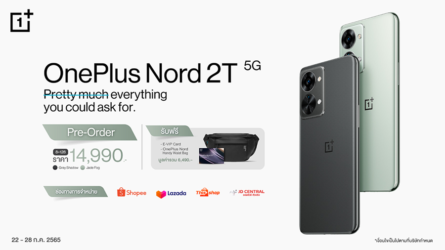 เปิดให้พรีออเดอร์ได้แล้วตั้งแต่วันนี้ - 28 กรกฎาคม 2565 พร้อมรับของสมนาคุณมูลค่า 6,490 บาท (E-VIP Card, OnePlus Nord Handy Waist Bag) ผ่านช่องทางการจำหน่ายออนไลน์ Shopee, Lazada, Thisshop, JD Central และจะวางจำหน่ายอย่างเป็นทางการในวันที่ 29 กรกฎาคมนี้ ผ่านทางเครือข่ายผู้ให้บริการ AIS พร้อมโปรโมชั่นพิเศษ Hot deal