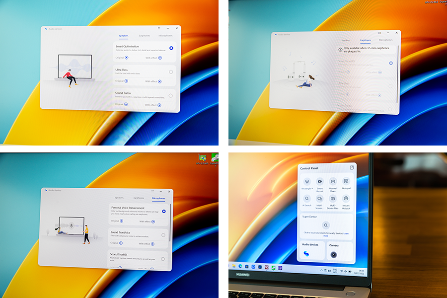 ต่อมาจะเป็นระบบเสียงที่ได้ระบบ AI และ Personal Voice Enhancement (PVE) เข้ามาช่วยทำงาน ทำให้ไมค์รับเสียงเดิม ๆ มีความฉลาดมากขึ้น โดยระบบ AI จะเข้ามาวิเคราะห์เสียงรบกวนของสภาพแวดล้อมรอบข้าง พร้อมกับจัดการลดเสียงรบกวนเหล่านั้นให้หายไป ในขณะที่ระบบ PVE ก็ช่วยเพิ่มขีดความสามารถของไมค์ทั้ง 4 ตัว บนเครื่อง ที่สามารถจับเสียงได้ไกลถึง 5 เมตร สามารถโฟกัสเสียงผู้สนทนาได้แม่นยำขึ้น ทำให้เสียงที่ถูกส่งขณะเราประชุมออนไลน์มีความราบรื่นและชัดเจน