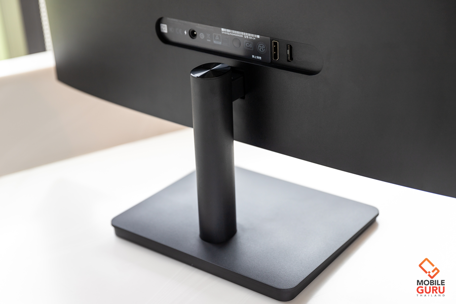 ส่วนด้านหลังของจอมอนิเตอร์จะมีพอร์ตเชื่อมต่อติดตั้งมาให้ทั้งหมด 3 พอร์ต ประกอบด้วย HDMI, Display Port และ Charging Port ส่วนขาตั้งและฐานรับน้ำหนักของจอจะใช้วัสดุเป็นพลาสติก