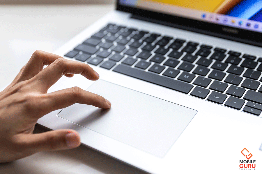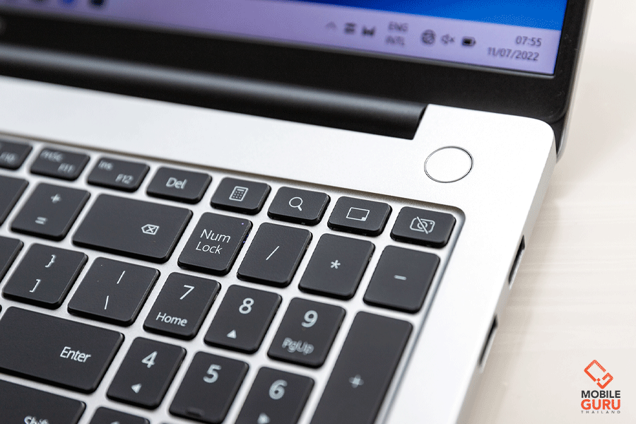 ขยับลงมาจากคีย์บอร์ดก็จะเจอกับแป้น Touch Pad ซึ่งมีขนาดใหญ่ ทำให้เราว่ามือใช้งานได้สะดวก ในขณะที่ด้านบนมุมขวาของคีย์บอร์ดจะเป็นตำแหน่งของปุ่มกดเปิด-ปิดตัวเครื่อง และใช้เป็นแป้นสะแกนนิ้วมือในตัว ซึ่งสามารถตั้งค่าสแกนนิ้วมือ เพื่อยืนยันตัวตนเข้าใช้งานบนเครื่องได้ผ่านเมนู "Sign-in Options" ใน Windows 11