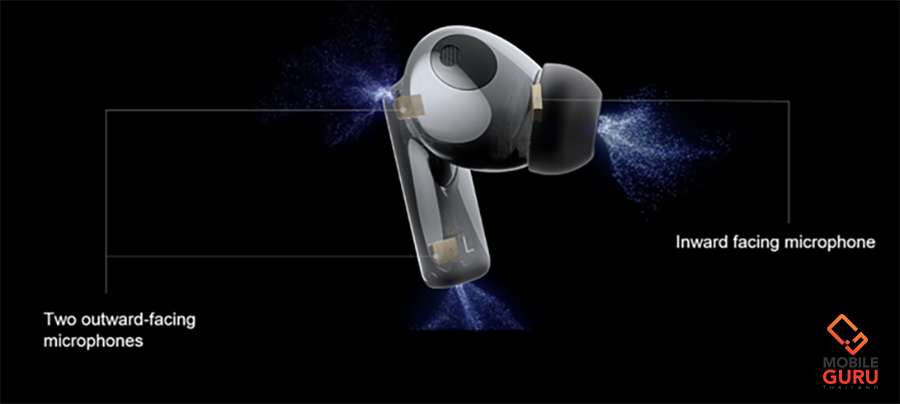 ในด้านของเทคโนโลยีในตัวหูฟัง HUAWEI FreeBuds Pro 2 ก็เรียกได้ว่าพกของล้ำระดับไฮเอนด์มาแบบจัดเต็ม ไม่น้อยหน้านวัตกรรมทางด้านเสียงของแบรนด์ Devialet เลย โดยหัวเว่ยเน้นจัดหนักเรื่องฟีเจอร์ด้านการตัดเสียงรบกวน เพื่อให้คุณเพลิดเพลินกับการรับฟังเสียงได้อย่างเต็มที่ ด้วยนวัตกรรมการตัดเสียงภายนอก (ANC) รุ่นใหม่ Intelligent Dynamic ANC 2.0 โดย HUAWEI FreeBuds Pro 2 ถือเป็นครั้งแรกที่ใช้ระบบตัดเสียงรบกวนที่ใช้ไมโครโฟน 3 ตัว