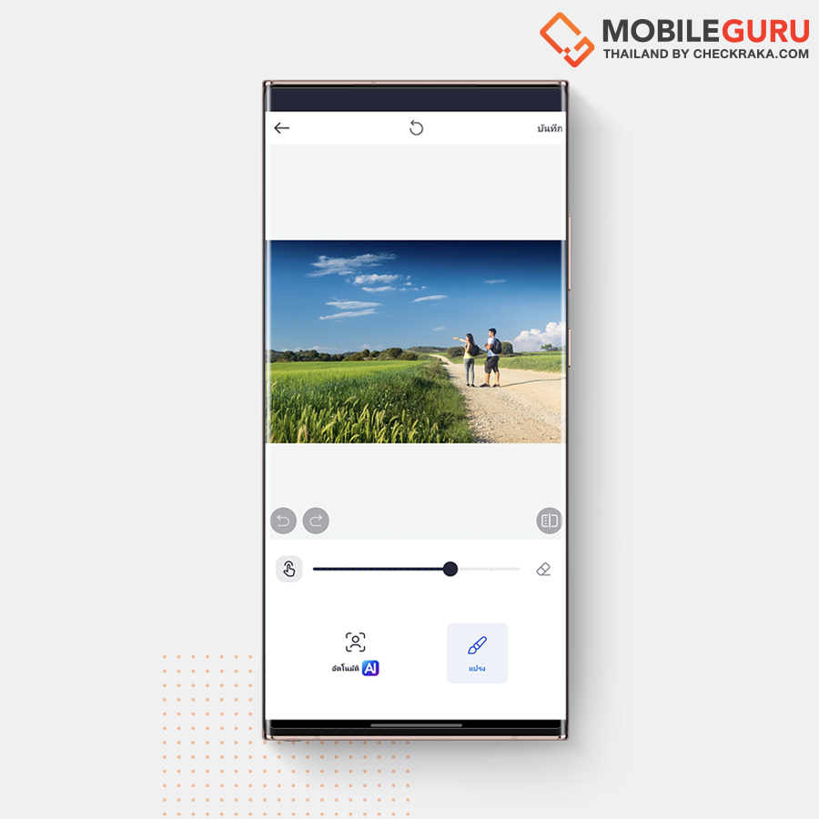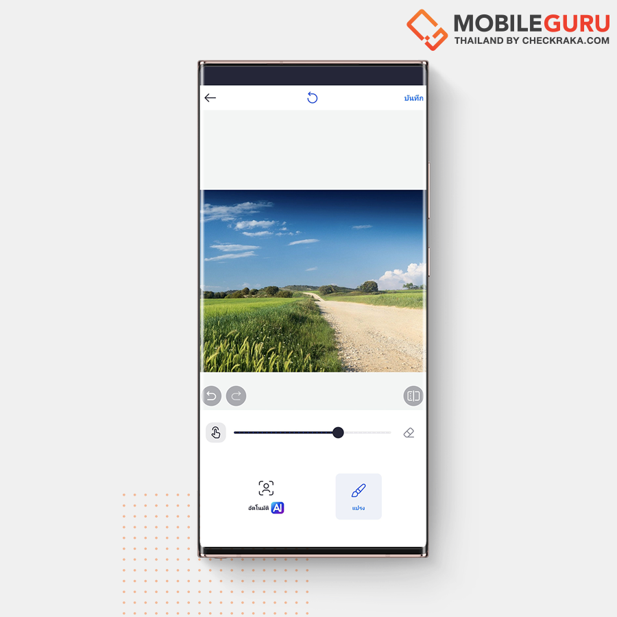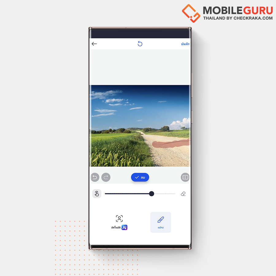 ตรงนี้เราสามารถใช้ "แปรง" ระบายในส่วนที่เราต้องการจะลบเพิ่มเติม เพื่อให้ภาพของเราดูเนียนมากขึ้น