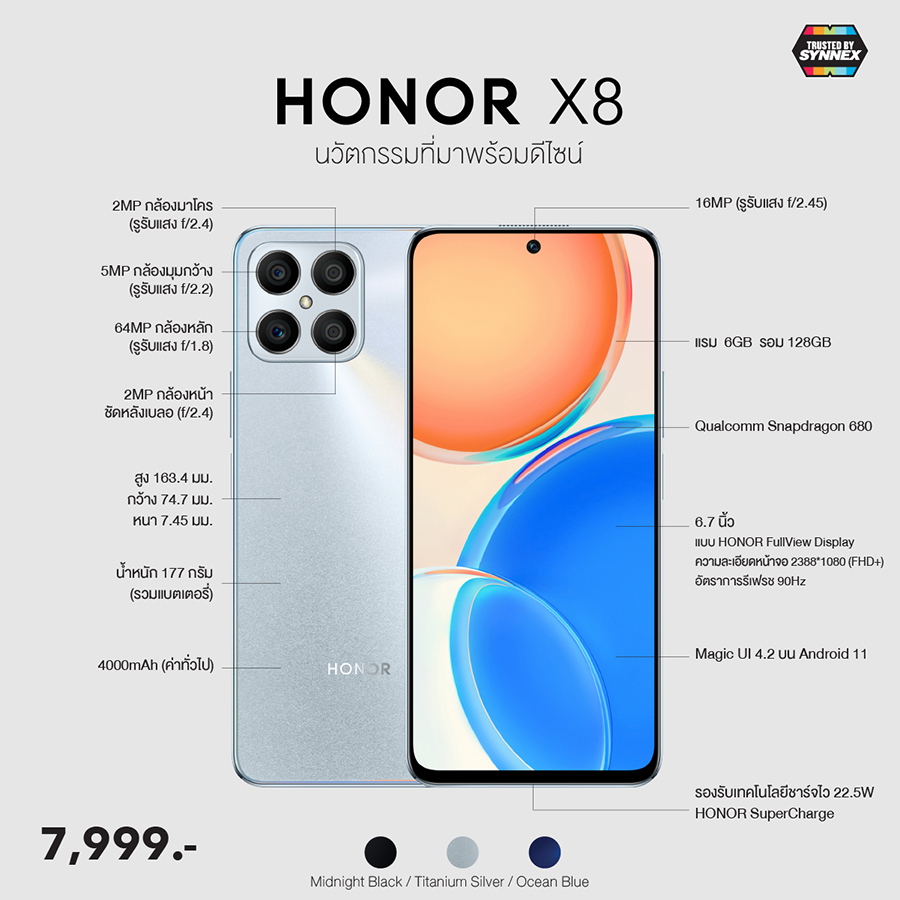 ในขณะที่สเปกตัวเครื่องโดยรวมก็จัดสเปกมาให้ค่อนข้างครบเครื่องเลยทีเดียว ส่วนตัวเครื่องจริงจะเป็นอย่างไร? ลองไปส่องความน่าสนใจของ Honor X8 พร้อมกันด้านล่างได้เลยครับ