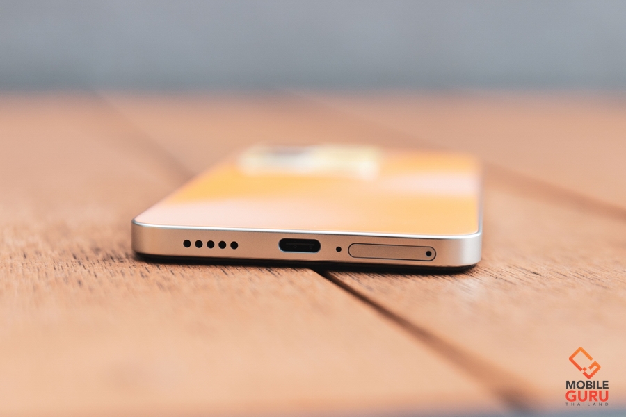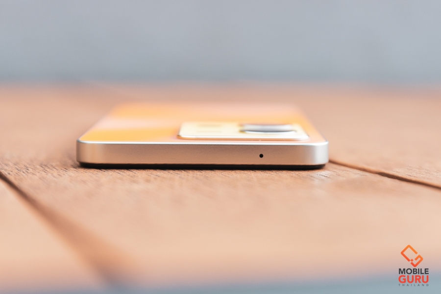 vivo V25 5G ด้านบนประกอบด้วยไมค์ตัดเสียงรบกวน, ด้านล่างมีพอร์ท USB Type-C, ไมโครโฟน และลำโพง (เสียงดังมากครับ), ช่องใส่ซิม ด้านซ้ายเรียบๆ, ด้านขวาจะมีปุ่มปรับระดับเสียง และปุ่ม Power