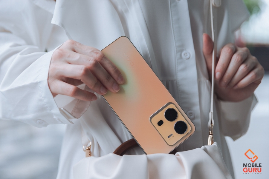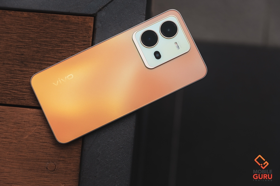 vivo V25 5G มาพร้อมหน้าจอ AMOLED ขนาด 6.44 นิ้ว ความละเอียด Full HD+, Refresh Rate 90Hz สวยงามมากๆ กล้องหน้าความละเอียด 50MP F2.0, Eye AF Selfie, รองรับระบบกันสั่น ในส่วนของดีไซน์ต่อยอดจากรุ่นพี่ รูปทรงเหลี่ยมมุมโค้งมนดูทันสมัย และสวยงาม ฝาหลังแบบด้านผิวกระจก Satin AG มอบสัมผัสที่ดูหรูหรา ละมุนเมื่อสัมผัส และไม่ก่อให้เกิดรอยนิ้วมือ สำหรับสีที่ได้มารีวิวจะเป็นสีทอง Sunrise Gold รองรับ Color Charging Glass เทคโนโลยีฝาหลังกระจกเปลี่ยนสีได้ด้วยแสง UV รุ่นนี้พออยู่ในร่มจะเป็นสีทองนะครับ แต่พอออกไปกลางแจ้งเจอแสงแดดแรงๆจะเปลี่ยนเป็นสีส้มชัดเจนเลย และเวลาอยู่ในร่มบางมุมยังออกสีฟ้าๆด้วยนะครับ สวยงามมากๆ เหมือนกับท้องฟ้าที่เปลี่ยนสีตามช่วงเวลาต่างๆ ในส่วนของชุดกล้องจะเป็นแผ่นโลหะขนาดใหญ่ตัดขอบแบบ Diamond Cut และปิดด้วยแผ่นกระจกดูพรีเมี่ยมมากๆเลยครับ เต็มไปด้วยรายละเอียด กล้องหลัง 3 เลนส์ ความละเอียด 64MP F1.8, (wide), PDAF, รองรับระบบกันสั่น OIS + 8MP F2.2, 120 องศา, 16 มม. (ultrawide) + 2MP F2.4 (macro) พร้อม Dual-LED flash