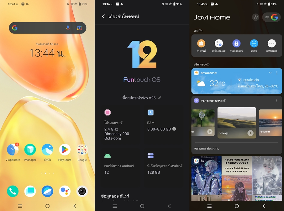 - Android 12 ครอบทับด้วย Funtouch OS 12
