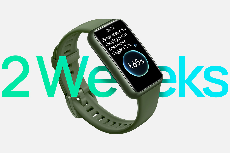 4 การใช้งานโดยทั่วไปคือ 14 วัน ภายใต้เงื่อนไขต่อไปนี้: การตรวจวัดอัตราการเต้นของหัวใจและการตรวจจับการนอนหลับ เปิดใช้หน้าจอแบบสั้นๆ จำนวน 200 ครั้ง 50 ข้อความ 6 สายเรียกเข้า และนาฬิกาปลุก 3 ครั้งภายใน 24 ชั่วโมง ออกกำลังกายเป็นเวลา 30 นาทีต่อสัปดาห์ ข้อมูลเหล่านี้มาจากห้องปฏิบัติการของ HUAWEI การใช้งานจริงอาจแตกต่างกันไป ขึ้นอยู่กับพฤติกรรมการใช้งานของคุณ
