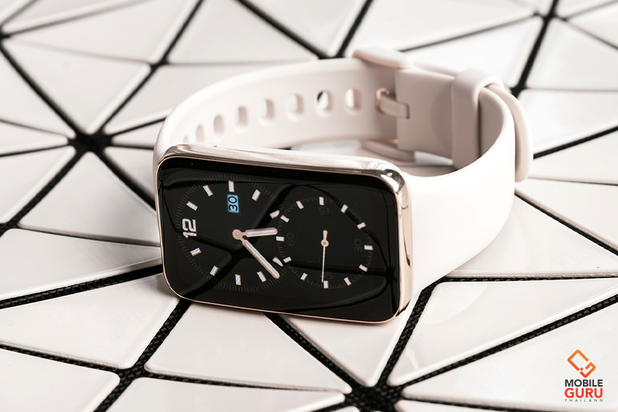 การเปลี่ยนสายรัดข้อมือทำได้ง่ายเหมือนเดิม เพราะยังคงใช้วิธีการปลดล็อค ด้วยการกดที่สลักล็อคด้านหลังตัวเรือน แล้วดึงสายรัดขึ้นก็เป็นอันเรียบร้อยครับ โดยสายรัดที่แถมมากับตัวเรือนจะเป็นวัสดุ TPU สวมใส่สบาย และมีสายเป็นวัสดุหนัง (Leather) ขายแยกตามมาด้วย