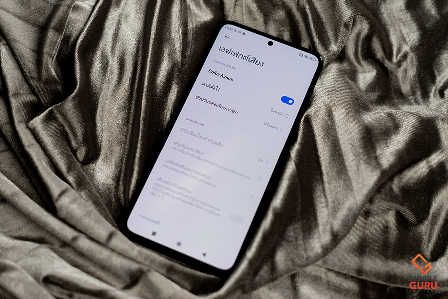 เมื่อด้านการรับชมเต็มอิ่มขนาดนั้น ด้านเสียงเองก็จะน้อยหน้าไม่ได้ ทาง Xiaomi จึงนำลำโพงคู่ที่ดีที่สุดใส่เข้ามาด้วย โดยเป็นลำโพงที่รองรับเสียง Dolby Atmos และได้รับการปรับแต่ง (Tune up) ด้วย Harman Kardon ซึ่งเสียงที่ขับออกลำโพงเป็นเสียงที่ดังกังวาล มีการโอบล้อมตัวหน่อย ๆ และให้มิติเสียงในระดับเริ่มต้นที่ดีเลยทีเดียวครับ บอกเลยว่าถ้าเปิดฟังในห้องนอนคนเดียวฟินแน่นอน