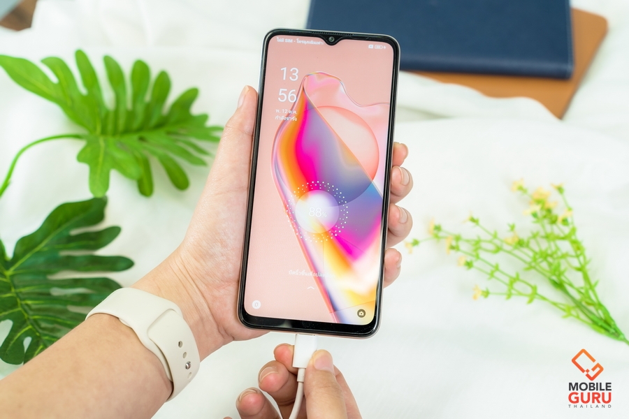 หน้าจอขนาด 6.56 นิ้ว ความละเอียด HD+ 720 x 1612 pixels (269 ppi), Refresh Rate 90Hz สวยงาม รับชมคลิปวิดีโอ และเล่นเกม ได้อย่างเต็มตา พร้อมระบบเสียงจากลำโพงคู่ที่เต็มอารมณ์