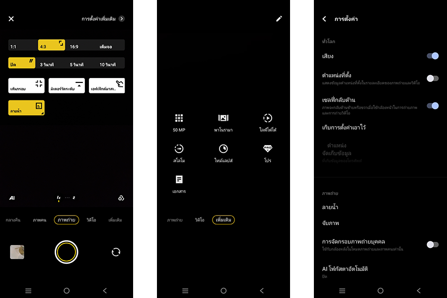 หน้าเมนูกล้องถ่ายภาพ