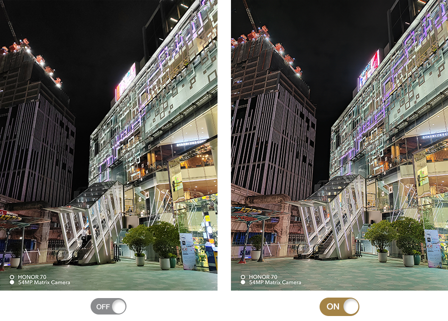 การใช้งานกล้องถ่ายภาพของสมาร์ตโฟน HONOR 70 เรียกได้ว่ามีความหลากหลายและสนุกมาก ๆ ค่ะ ผลงานภาพถ่ายและวิดีโอที่ออกมาสวยงาม คมชัด น่าประทับใจ ยิ่งมองภาพผ่านจอมือถือยิ่งรู้สึกว่าภาพสวยขึ้นไปอีกหลายเท่าตัว การเก็บรายละเอียดต่าง ๆ การถ่ายตอนกลางคืนหรือในที่แสงน้อยก็ทำได้ดีเช่นกัน AI ฉลาดมาก แม้จะมีเอ๋อ ๆ บ้างบางที แต่ต้องยอมรับเลยว่าลั่นชัตเตอร์สนุกเลยทีเดียว