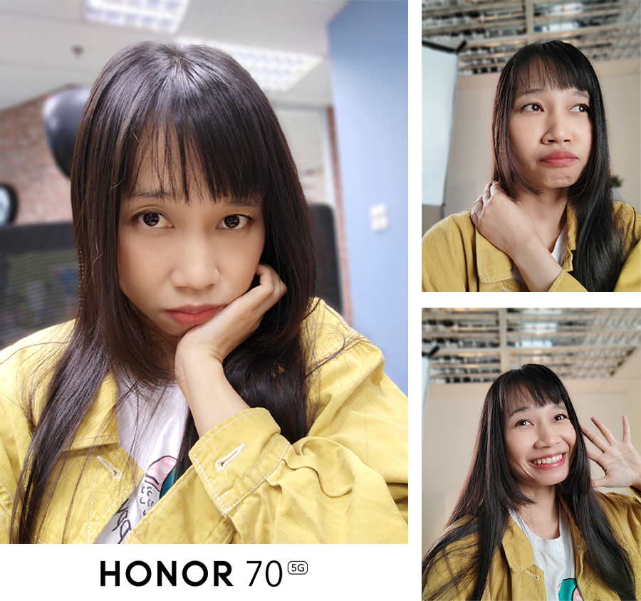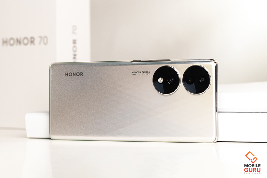 สมาร์ตโฟนสุดยอดนวัตกรรมกล้อง HONOR 70 ภายใต้สโลแกน "Seize the Moment" พร้อมตอบโจทย์ทุกการถ่ายภาพและวิดีโอ ด้วยกล้องหลัง Triple Camera โดยมาพร้อมเลนส์หลักความละเอียด 54 ล้านพิกเซล เซนเซอร์ระดับแฟล็กชิป Sony IMX800 ที่มีขนาดใหญ่ถึง 1/1.49" ผสานกับการทำงานร่วมกับ HONOR Image Engine ที่ช่วยให้การถ่ายภาพในที่มืดหรือถ่ายย้อนแสงทำได้ดีขึ้น ค่ารูรับแสงกว้าง f/1.9 พร้อมด้วยเลนส์ Ultra Wide & Macro เก็บภาพมุมกว้าง 122 องศา พร้อมระบบ AI Distortion ที่จะช่วยปรับให้ภาพดูเป็นธรรมชาติ ไม่บิดเบี้ยว ส่วนมาโครสามารถถ่ายภาพได้ในระยะใกล้เพียง 2.5 เซนติเมตร โดยเลนส์ตัวที่ 2 นี้ เป็นแบบ 2-in-1 ความละเอียด 50 ล้านพิกเซล ค่ารูรับแสงกว้าง f/2.2 และเลนส์ที่ 3 เป็นเลนส์ Depth ความละเอียด 2 ล้านพิกเซล ที่จะช่วยให้ภาพถ่ายมีมิติสวยงามขึ้น ค่ารูรับแสงกว้าง f/2.4 มาพร้อมไฟแฟลช LED ในตัว ส่วนกล้องหน้า เป็นเลนส์ความละเอียด 32 ล้านพิกเซล ค่ารูรับแสงกว้าง f/2.4
