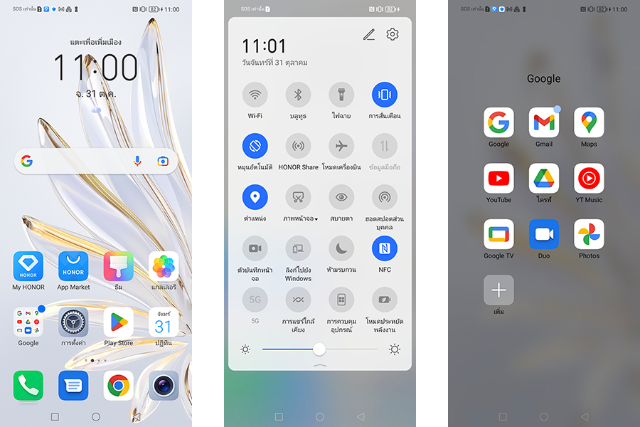 สำหรับคนที่กังวลเรื่องการใช้งานบริการของ Google ก็ต้องบอกเลยว่า HONOR 70 รุ่นนี้ ทำงานอยู่บนพื้นฐานของ Android 12 ครอบทับด้วย Magic UI 6.1 ที่สามารถใช้งาน GMS หรือ Google Mobile Services ได้อย่างเต็มรูปแบบค่ะ UI หน้าตาสวยงาม ใช้งานง่าย พร้อมทั้งมีฟีเจอร์ที่ตอบโจทย์การใช้งานครบครันเลยค่ะ