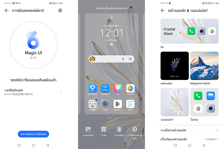 - ระบบปฏิบัติการ Magic UI 6.1 บนพื้นฐาน Android 12