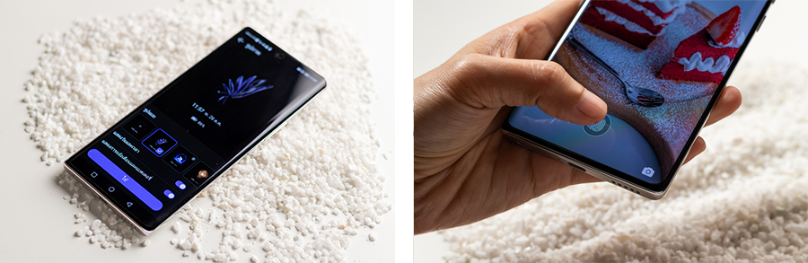 ตัวเครื่องพื้นผิวเรียบลื่น ให้สัมผัสและการจับถือที่สบาย ถนัดมือ พกพาสะดวกด้วยความบางเบา โดยมีมิติตัวเครื่องกว้าง 73.3 x ยาว 161.4 x หนา 7.91 มิลลิเมตร และน้ำหนักโดยรวมเพียง 178 กรัมเท่านั้น เรียกได้ว่าเป็นสมาร์ตโฟนอีกหนึ่งรุ่นที่มีขนาดและน้ำหนักที่กำลังพอดีกับการใช้งาน เก็บใส่กระเป๋ากางเกงหรือกระเป๋าถือได้ ถือเดินถ่าย Vlog ยาว ๆ ก็ช่วยผ่อนแรงได้เยอะ