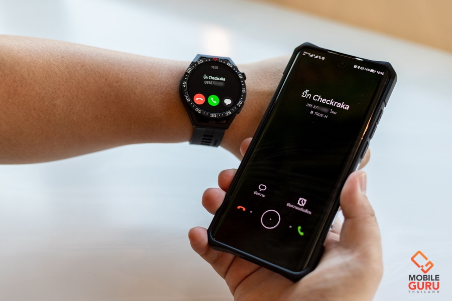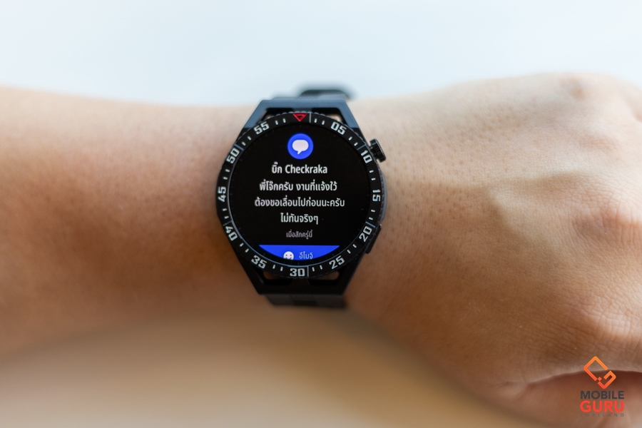 HUAWEI WATCH GT 3 SE จะมาพร้อมลำโพงสนทนาในตัว พร้อมไมโครโฟน สามารถกดรับสายได้ที่ตัวสมาร์ทวอทช์ได้เลย (เวลาสนทนาจะมีเสียงออกมาจากช่องลำโพง ควรหามุมสงบคุยนิดนึงครับ จะได้มีความเป็นส่วนตัว และไม่รบกวนคนรอบข้าง) การแสดงผลต่างๆ รวมทั้งการแจ้งเตือนจะรองรับภาษาไทยสมบูรณ์แบบเลย