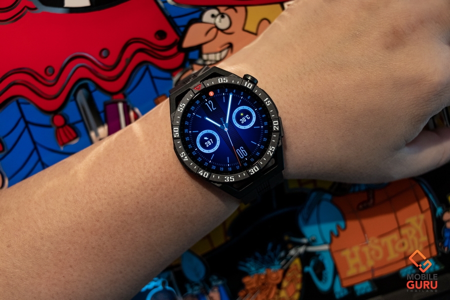 - หน้าจอ AMOLED ขนาด 1.43 นิ้ว ความละเอียด 466 x 466 pixels (326 PPI) รองรับ Always-On Display