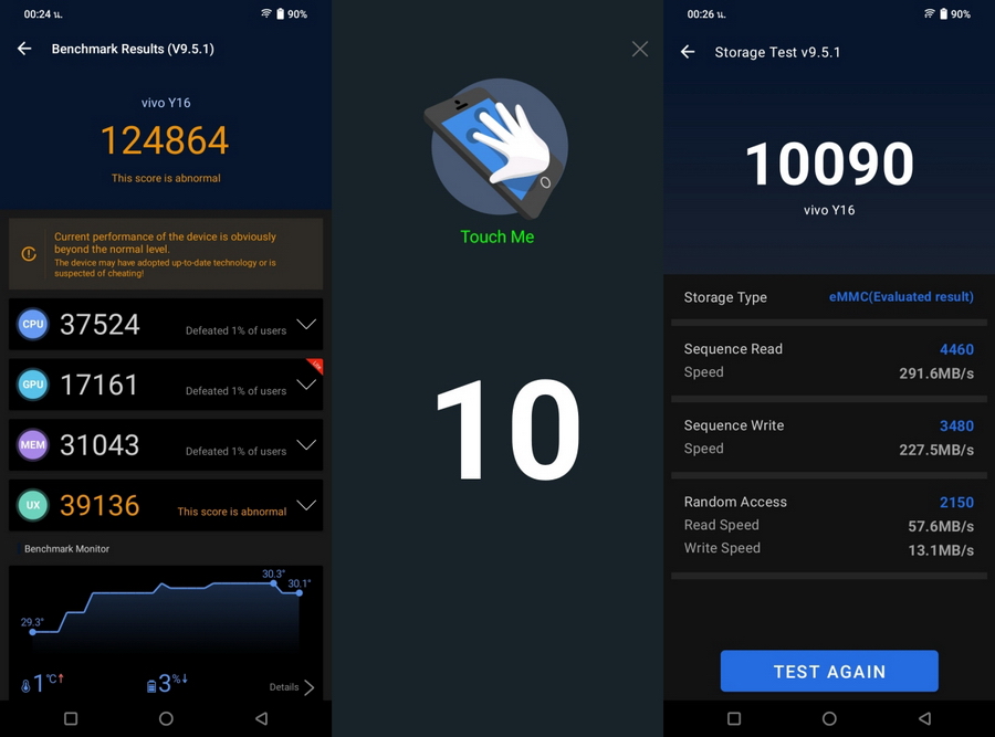 ผลทดสอบของ vivo Y16