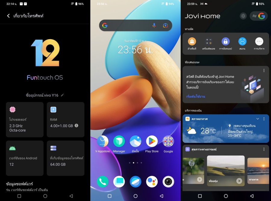 - Android 12 ครอบทับด้วย Funtouch OS 12