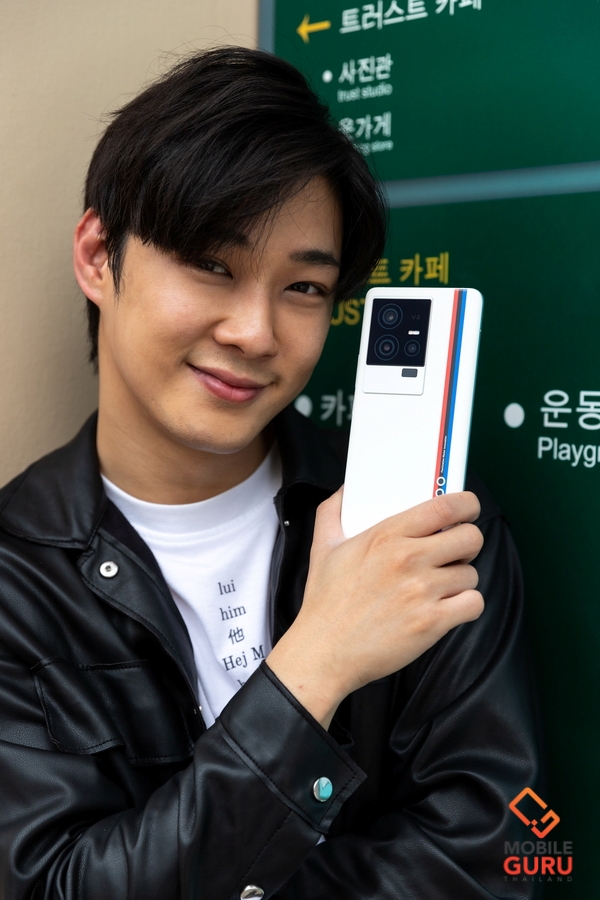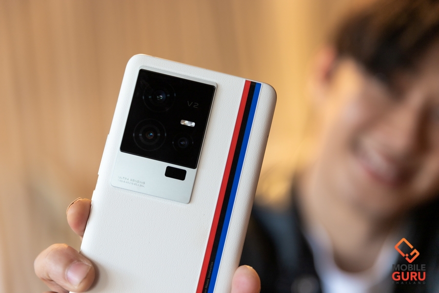 ขอบตัวเครื่องเป็นวัสดุโลหะด้าน และฝาหลังหุ้มด้วยหนัง Vegan Leather พร้อมการออกแบบที่ผสานแถบโลโก้ 3 สี อันเป็นเอกลักษณ์ของ BMW M Motorsport ดูสะดุดตา และโดนใจมากๆ ชุดกล้องมีขนาดใหญ่มาก เป็นแผ่นโลหะและกระจก ซึ่งเป็นดีไซน์ที่มีความเป็น vivo อยู่ในนั้น ผมว่าสวยงามดีครับ กล้องหลัง 3 เลนส์ ความละเอียด 50MP + 13MP (telephoto) + 8MP (ultrawide) พร้อมไฟแฟลชคู่ LED และสัญลักษณ์ V2 ซึ่งรุ่นนี้มาพร้อมชิป V2 ซึ่งเป็นชิป ISP (Image Signal Processor) ซึ่งเป็นอีกหนึ่งจุดขายที่น่าสนใจมากในรุ่นนี้ สำหรับรอบตัวเครื่องด้านบนมีพอร์ท Infrared (ทำให้สามารถใช้งานสมาร์ตโฟนเป็นรีโมท สำหรับเครื่องใช้ไฟฟ้าต่างๆ ได้ครับ) และไมค์ตัดเสียงรบกวน สำหรับด้านล่างมีช่องใส่ซิม, ไมโครโฟน, พอร์ท USB Type-C และลำโพง โดยรุ่นนี้มาพร้อมลำโพงคู่ ด้านขวาจะมีปุ่มปรับระดับเสียง และปุ่ม Power ส่วนด้านซ้ายจะเรียบๆ