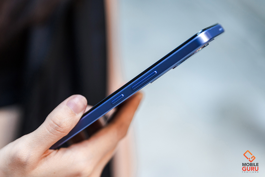 ด้านซ้ายของตัวเครื่องมีถาดสำหรับใส่ซิมการ์ดแบบ Triple Slot รองรับ 2 Nano SIMs + 1 microSD Card ที่สามารถเพิ่มพื้นที่ความจำได้สูงสุดถึง 1TB ส่วนด้านขวาของตัวเครื่องมีปุ่มปรับเพิ่ม-ลดระดับเสียง (Volume) ถัดลงมาด้านล่างจะเป็นปุ่ม Power สำหรับเปิด-ปิดเครื่องหรือพักการใช้งานหน้าจอ