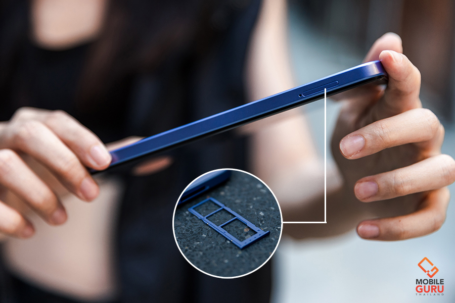 - ช่องใส่ซิมการ์ด Triple Slot รองรับ 2 Nano SIMs + 1 MicroSD Card (สูงสุด 1TB)