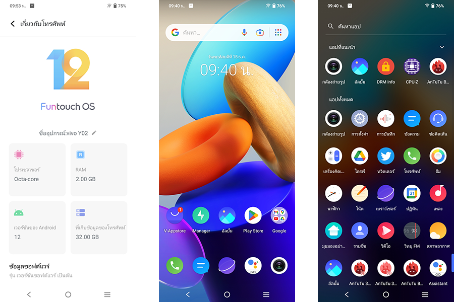 - ระบบปฏิบัติการ Android 12 (Go Edition) ครอบทับด้วย Funtouch OS 12