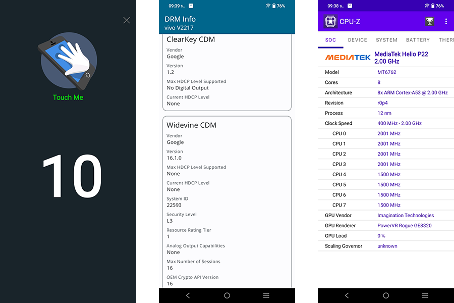 - หน่วยประมวลผล CPU MediaTek Helio P22 (12nm), Octa-core, Up to 2.0GHz