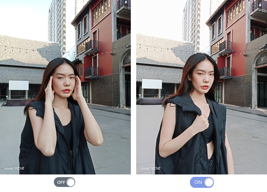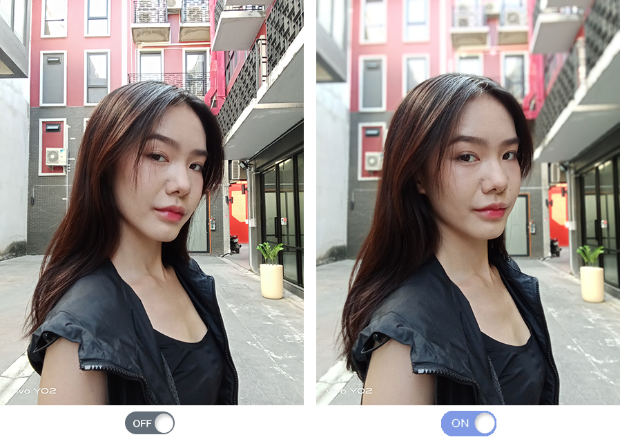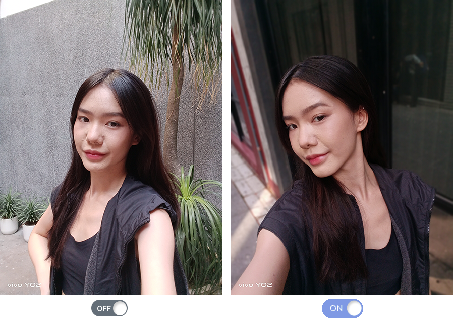 กล้องหน้า - vivo Y02 ใช้เลนส์ความละเอียด 5 ล้านพิกเซล ค่ารูรับแสงกว้าง f/2.2 มาพร้อมโหมดถ่ายภาพ Face Beauty, Photo, Video รองรับการบันทึกวิดีโอ, ถ่ายภาพ Selfie Bokeh ได้ และสามารถเปิด Flash เพิ่มแสง เติมความสว่างให้กับใบหน้าในขณะเซลฟี่ด้วยก็ได้เช่นกันค่ะ