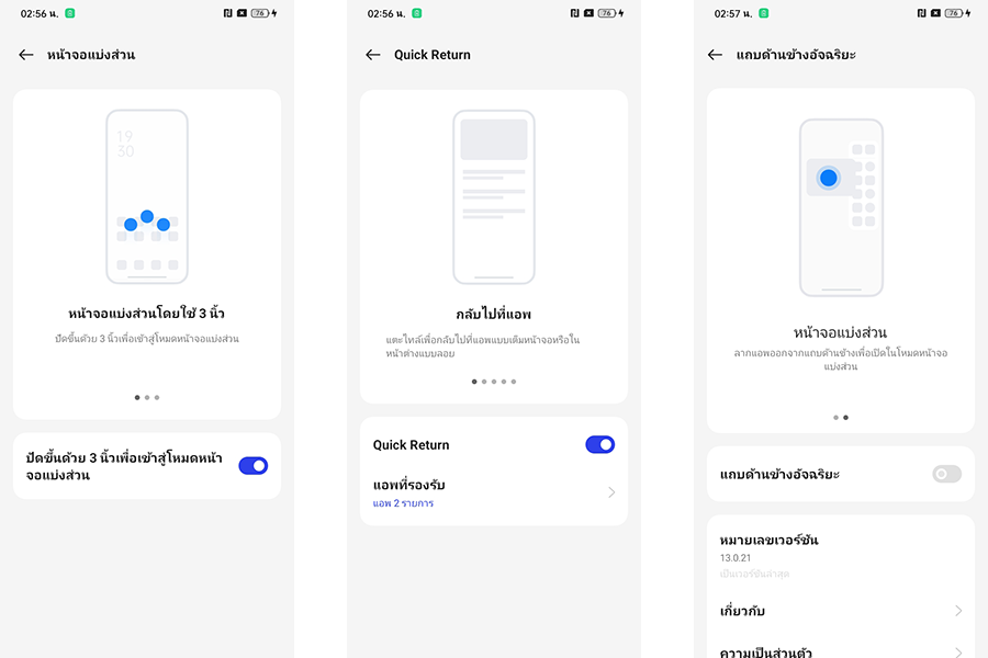 สำหรับ Android 13 ได้มีการอัพเกรดทางด้านประสิทธิภาพและความปลอดภัย เพื่อให้ผู้ใช้งานสะดวกสบาย และไม่ต้องคอยกังวลเรื่องความเป็นส่วนตัวอีกต่อไป ซึ่งนอกจากฟีเจอร์-ลูกเล่นต่าง ๆ ที่เราคุ้นเคยกันดีอยู่แล้ว ทั้งโหมดถนอมสายตา, โหมดกลางคืน, โหมดโคลนแอพ, โหมดหน้าจอแบ่งส่วน, แถบด้านข้างอัจฉริยะ, ลูกบอลช่วยเหลือ, Gestures จะมีมาให้เลือกใช้งานอย่างครบครันแล้ว ยังมีอีก 3 ฟีเจอร์ที่น่าสนใจ ที่จะช่วยซัพพอร์ตการใช้งานของเราให้ง่ายยิ่งขึ้น ได้แก่ การแปลภาษา 3 นิ้ว ด้วย Google Lens (Three-Finger Translate with Google Lens) ฟีเจอร์ช่วยแปลภาษาที่สามารถทำได้ง่าย ๆ แค่ใช้สามนิ้วปัดลง โดยสามารถใช้ได้ทั้งบนหน้าเว็บไซต์ แอปพลิเคชัน และรูปภาพ แล้วครอปเลือกส่วนที่ต้องการแปล จากนั้นกด Translate ระบบก็จะทำการแปลให้โดยอัตโนมัติ ถ้าภาษาไม่ตรง ก็เลือกตรวจหาภาษาที่ต้องการได้เลย โดยรองรับการแปลมากกว่า 100 ภาษาเลยทีเดียว