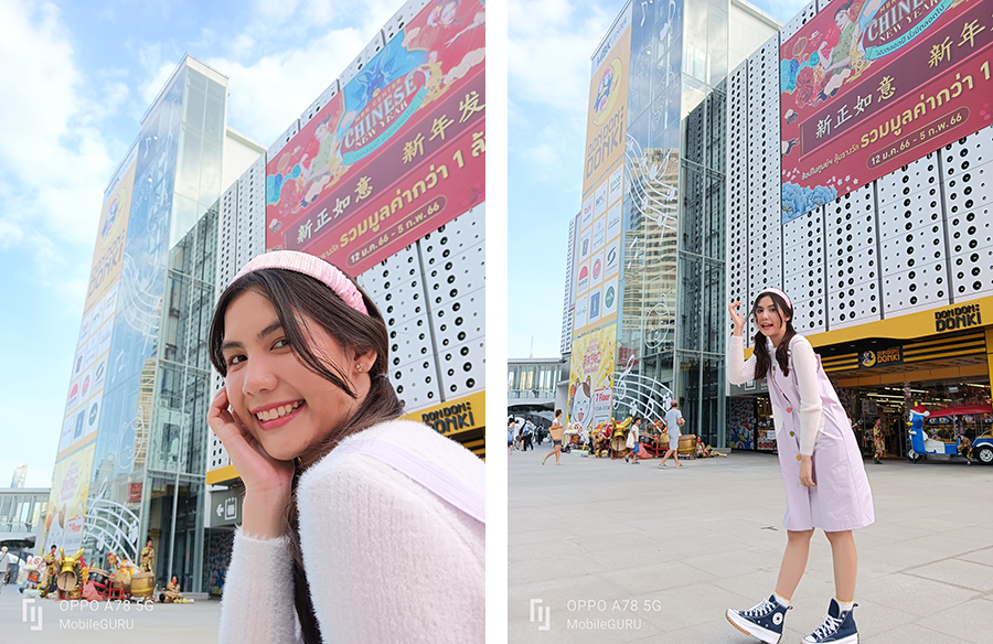 กล้องหลัง - OPPO A7 5G มาพร้อมกล้องหลังคู่ ประกอบด้วย เลนส์หลัก AI ความละเอียด 50 ล้านพิกเซล ค่ารูรับแสงกว้าง f/1.8 และเลนส์ Depth ความละเอียด 2 ล้านพิกเซล ค่ารูรับแสงกว้าง f/2.4 พร้อมมีไฟแฟลช LED ในตัว มาพร้อมโหมดถ่ายภาพ Night, Videos, Photos, Portrait, Expert, Extra HD, Panoramic, Time-lapse, Slow-motion, Sticker, Text scanner, และ Google Lens รองรับการบันทึกวิดีโอความละเอียด 1080P@30fps, 720P@30fps และวิดีโอ SLO-MO ความละเอียด 720P (120fps) มีลูกเล่นและฟีเจอร์ต่าง ๆ มาให้เล่นกันเยอะพอสมควร และผลลัพธ์ภาพถ่ายก็ทำออกมาได้น่าประทับใจดีเลยทีเดียว โทนสีสวย คมชัด ภาพบุคคลตัดขอบเนียนสวย เอาเป็นว่า... ตามมาดูตัวอย่างภาพถ่ายจริงกันเลยดีกว่า!