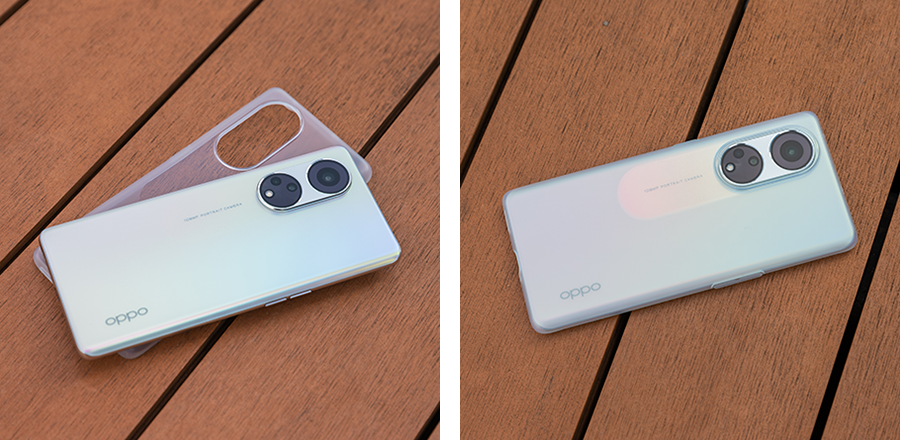 OPPO Reno8 T 5G มาพร้อมกับโลโก้ oppo ที่ถูกจัดวางอยู่ทางด้านล่างขวา พร้อมดีไซน์โมดูลกล้องเป็นแบบคู่ โดยจัดวางโมดูลกล้องทั้งสองในแนวตั้ง และวางไว้ภายในแผงวงรีที่มีพื้นผิวตัดกัน เพิ่มความสวยงามทันสมัยได้อย่างไร้ที่ติ นอกจากนี้โมดูลกล้องยังล้อมรอบด้วยวงแหวนโลหะตกแต่ง เพิ่มความพรีเมียม หรูหรา พร้อมทั้งช่วยปกป้องเลนส์ได้เป็นอย่างดี