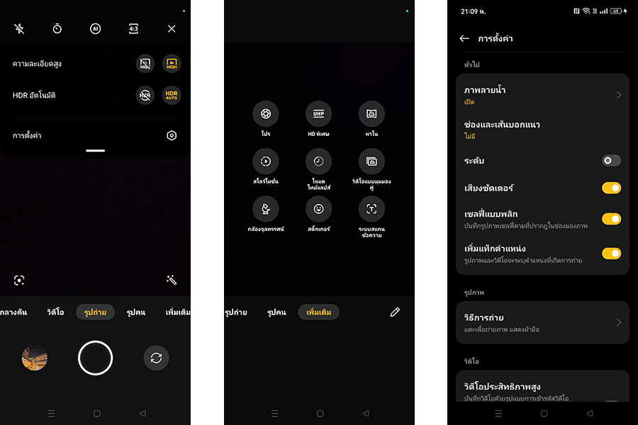 โหมดถ่ายภาพกล้องหลัง