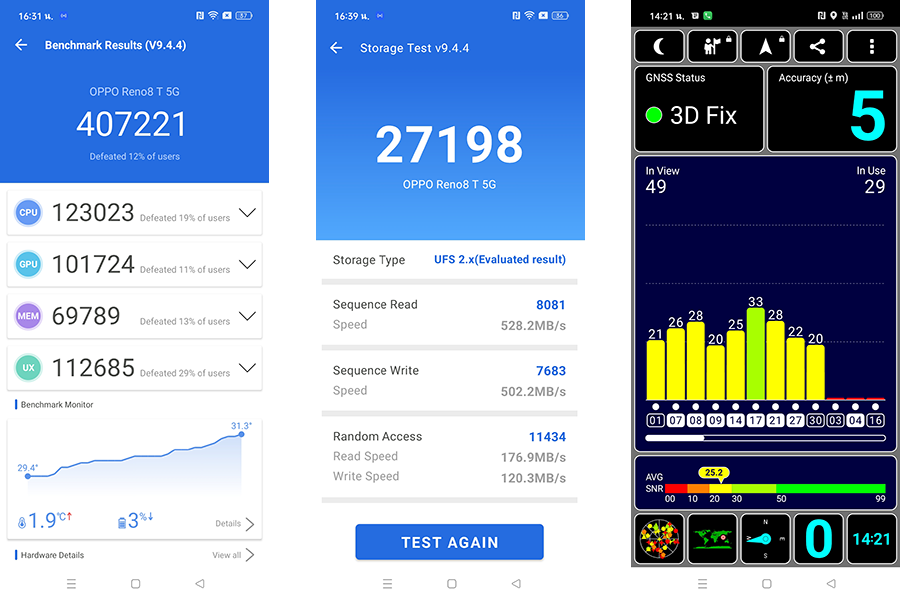 - ทดสอบความเร็วในการอ่าน-เขียนของหน่วยความจำด้วยแอปพลิเคชัน AnTuTu Benchmark ได้ Sequential Read 528.2 MB/s | Sequential Write 502.2 MB/s