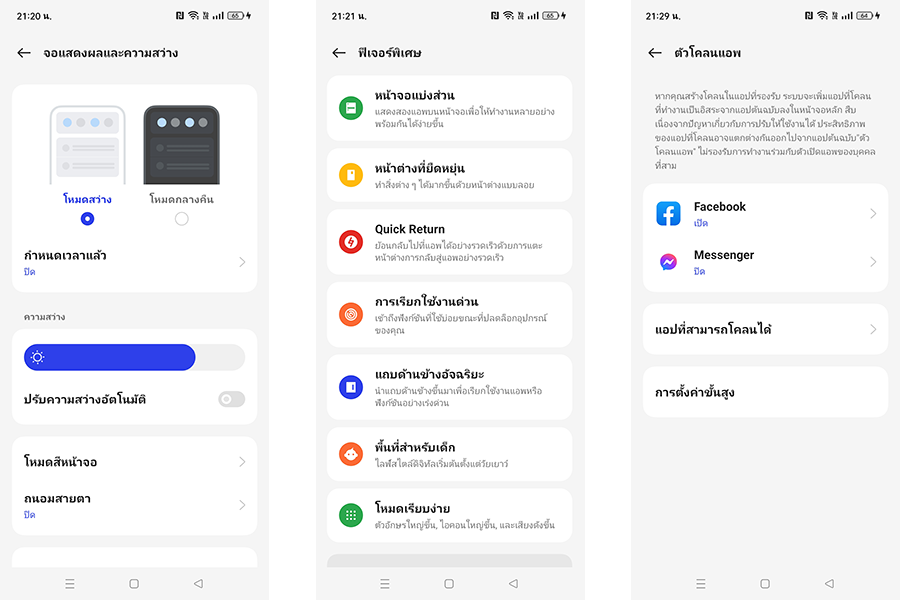สำหรับฟีเจอร์และลูกเล่นต่าง ๆ ใน ColorOS 13 ไม่ว่าจะเป็นการปรับแต่งหน้าจอด้วยตัวเอง, โหมดถนอมสายตา, โหมดกลางคืน, โหมดโคลนแอพ, โหมดหน้าจอแบ่งส่วน รวมไปถึงเครื่องมืออำนวยความสะดวกต่าง ๆ ไม่ว่าจะเป็น แถบด้านข้างอัจฉริยะ, ลูกบอลช่วยเหลือ, Flex Drop, Air Gestures, การแปลภาษา 3 นิ้ว ด้วย Google Lens ก็มีมาให้เลือกใช้งานอย่างครบครัน พร้อมทั้งสามารถเลือกปรับอัตราการรีเฟรชจอภาพเป็นแบบสูง 120Hz หรือแบบมาตรฐาน 60Hz ก็ได้