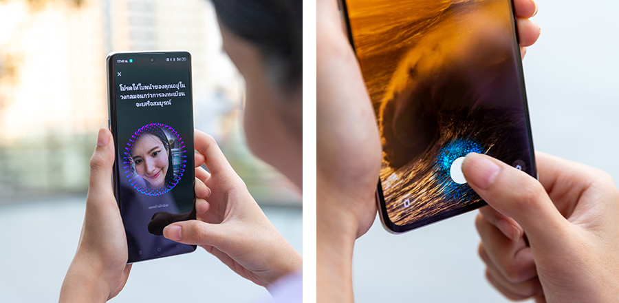 - รองรับการสแกนลายนิ้วมือบนหน้าจอและสแกนใบหน้า