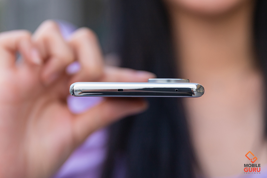 ด้านบนของตัวเครื่องมีรูไมโครโฟนตัดเสียงรบกวน และช่องลำโพงอีกหนึ่งช่อง ส่วนทางด้านล่างของตัวเครื่องมีช่องใส่ซิมการ์ดแบบ Hybrid รองรับ Nano-SIM 2 ช่อง หรือ 1 Nano-SIM + 1 MicroSD Card (สูงสุด 1TB), ไมโครโฟนสนทนา, พอร์ตเชื่อมต่อสำหรับชาร์จแบตเตอรี่และถ่ายโอนพลังงาน/ข้อมูลแบบ USB Type-C และลำโพงเสียง